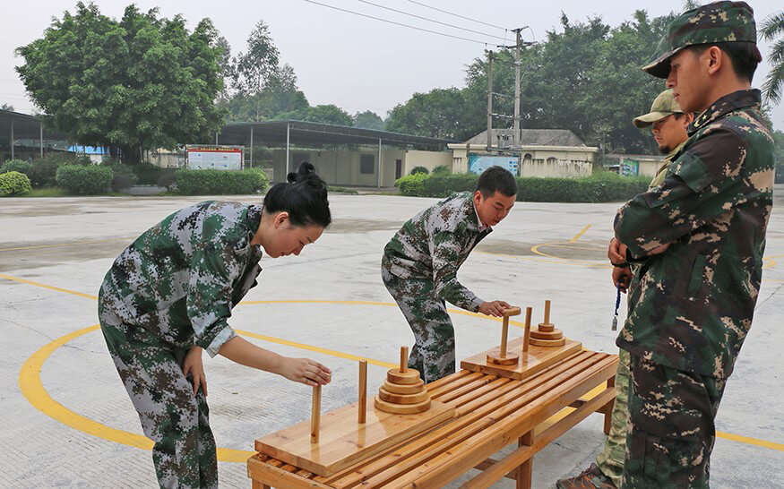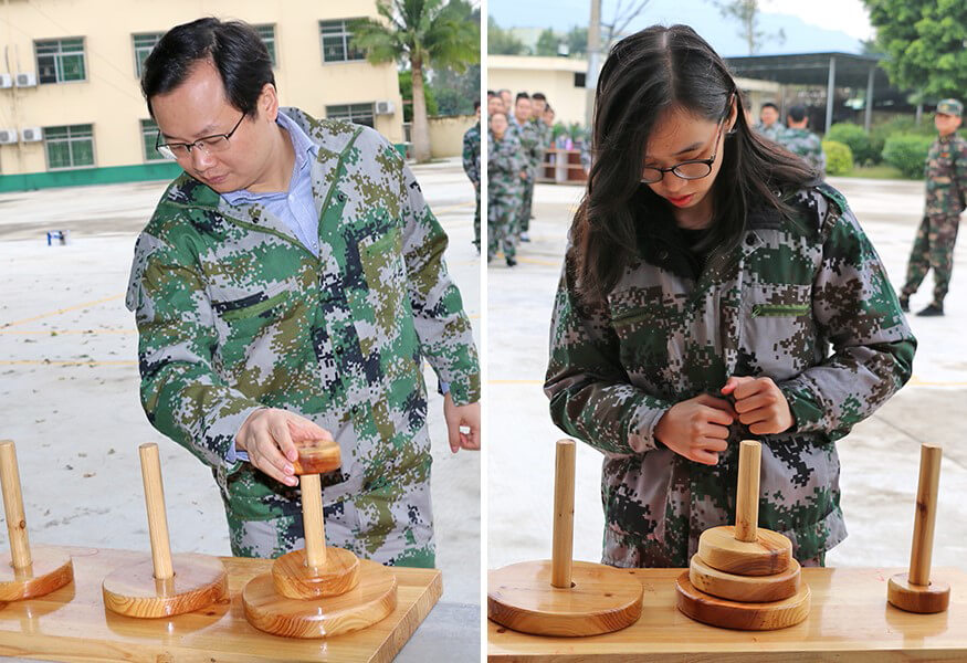 为了打造具有强大凝聚力和战斗力的团队,学员们按照训练营设计的训练项目,在教练的要求和指导下,开展了形式多样、充满挑战和乐趣的活动。团队风采展示、汉诺塔、挑战NO.1、达芬奇密码、极限时速、决战沙场、毕业墙……每一项活动,都是对团队协作的检验,都是对团队精神的锻造,都是对团队成员的磨炼。
